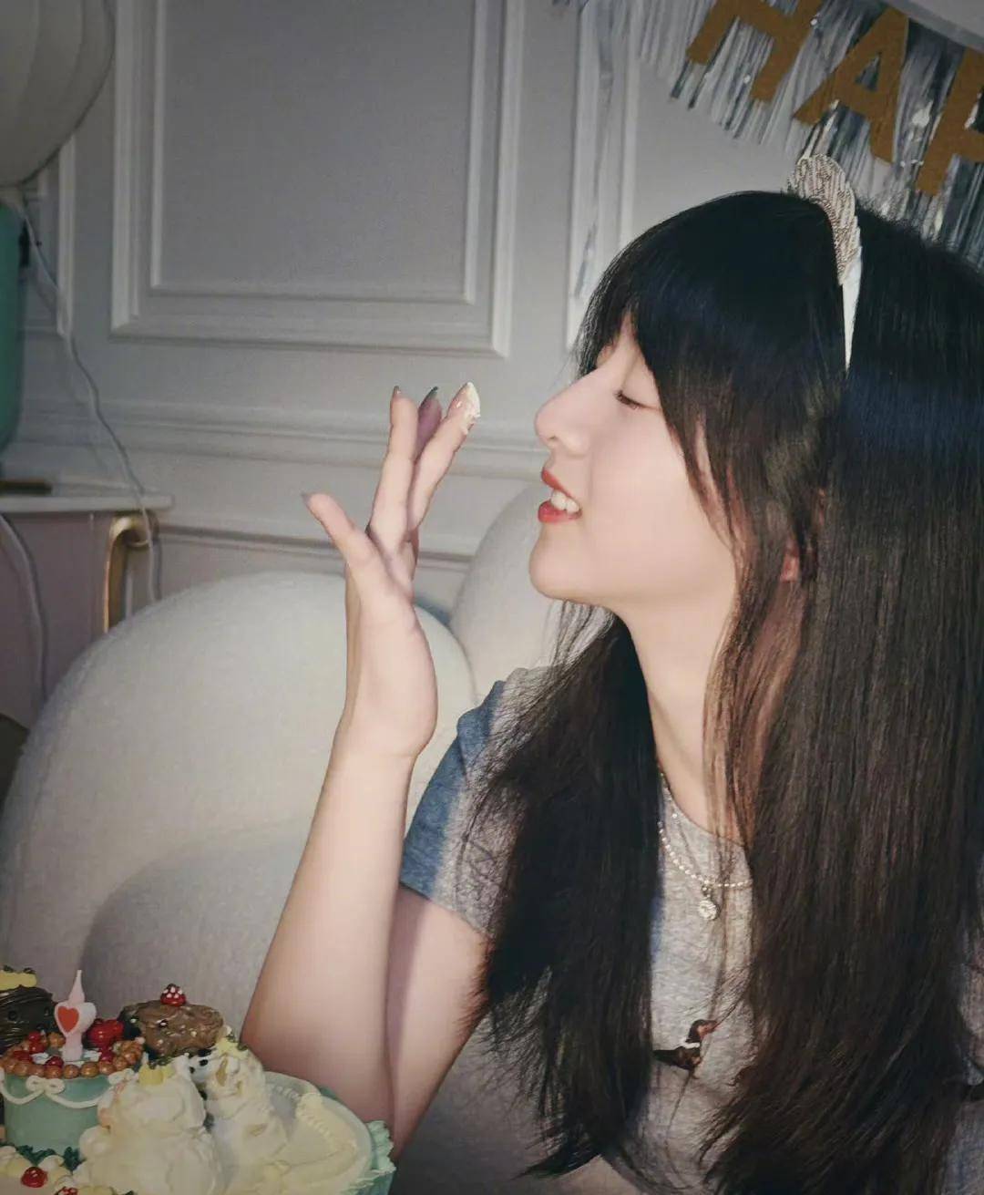 照片中,森碟头戴精致簪花,身着淡雅新中式服装,浅笑嫣然的模样完全褪去了童年时的稚气。最让人惊艳的是她的侧脸线条,下颌线清晰流畅,鼻尖、嘴唇、下巴三点连成完美直线,整个人的气质温婉又灵动。
